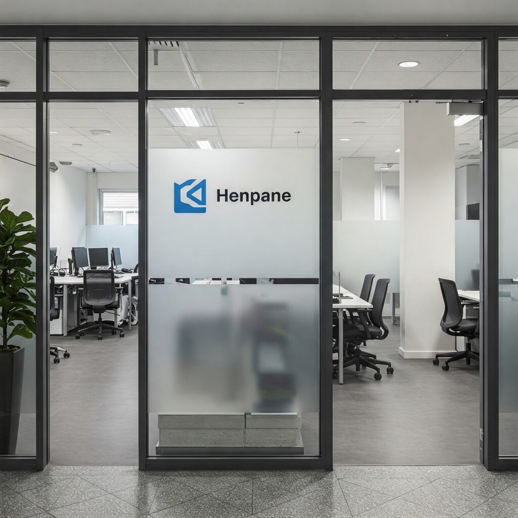 エントランスから内部が見えてしまう執務室について、パーテーションパネルを使用して視線を遮る方法を説明します。