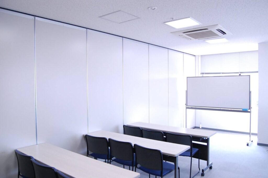 スライディングウォールとは、レールに沿ってパネルを移動させることで、一つの空間を分割したり、つなげたりできる可動式の間仕切りです。その特性から、オフィス、会議室、病院、学校といった多様な施設で、空間を有効活用するために導入されています。