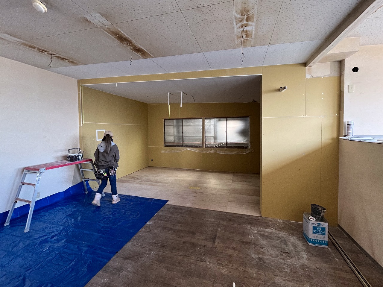 今回、増床部分の天井工事に加え、既存天井への塗装工事もあわせてお手伝いさせていただきました。