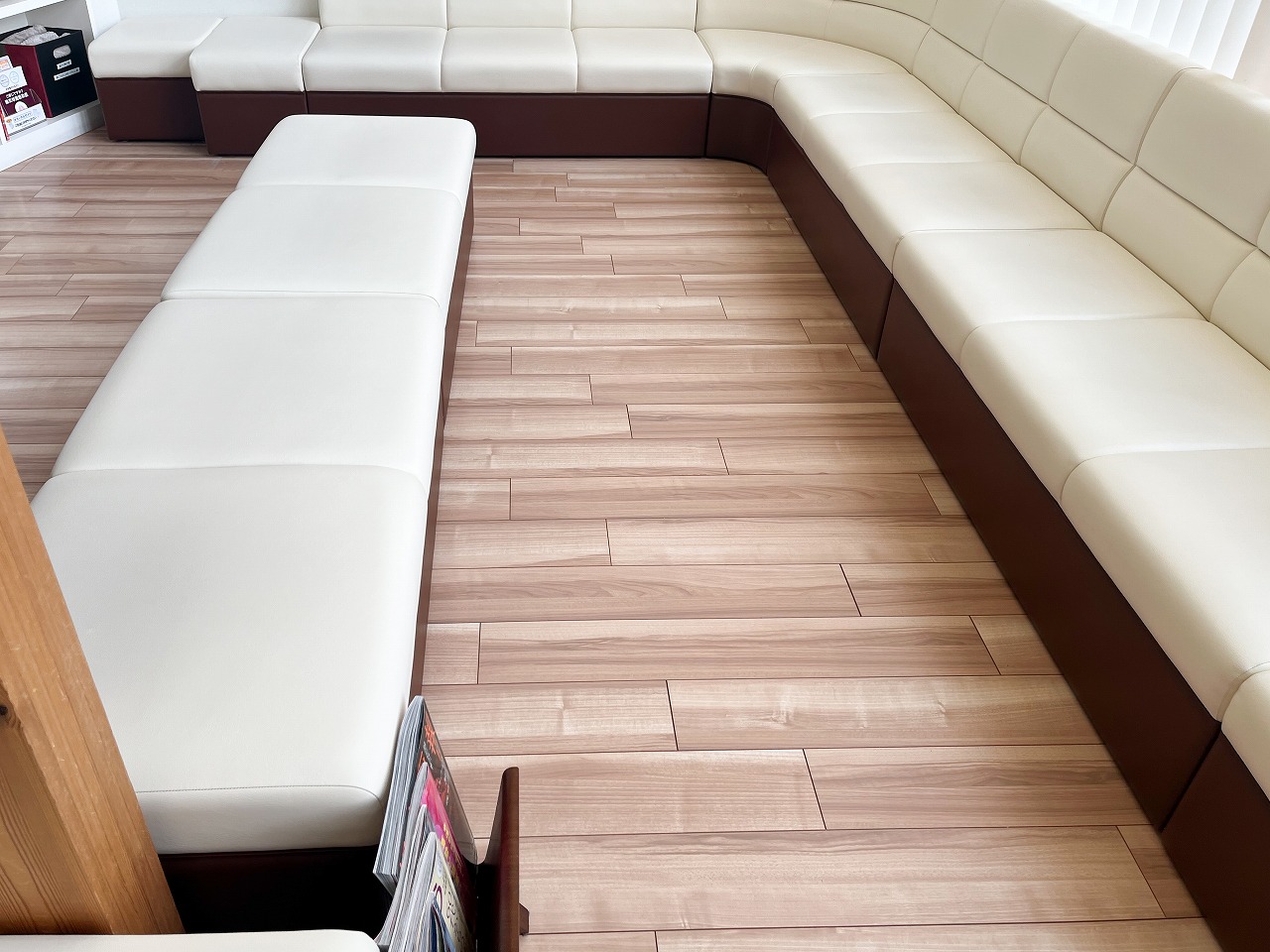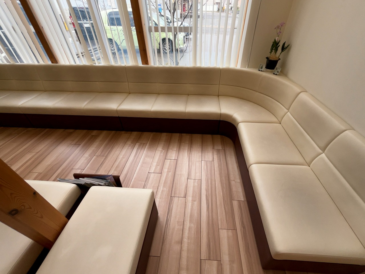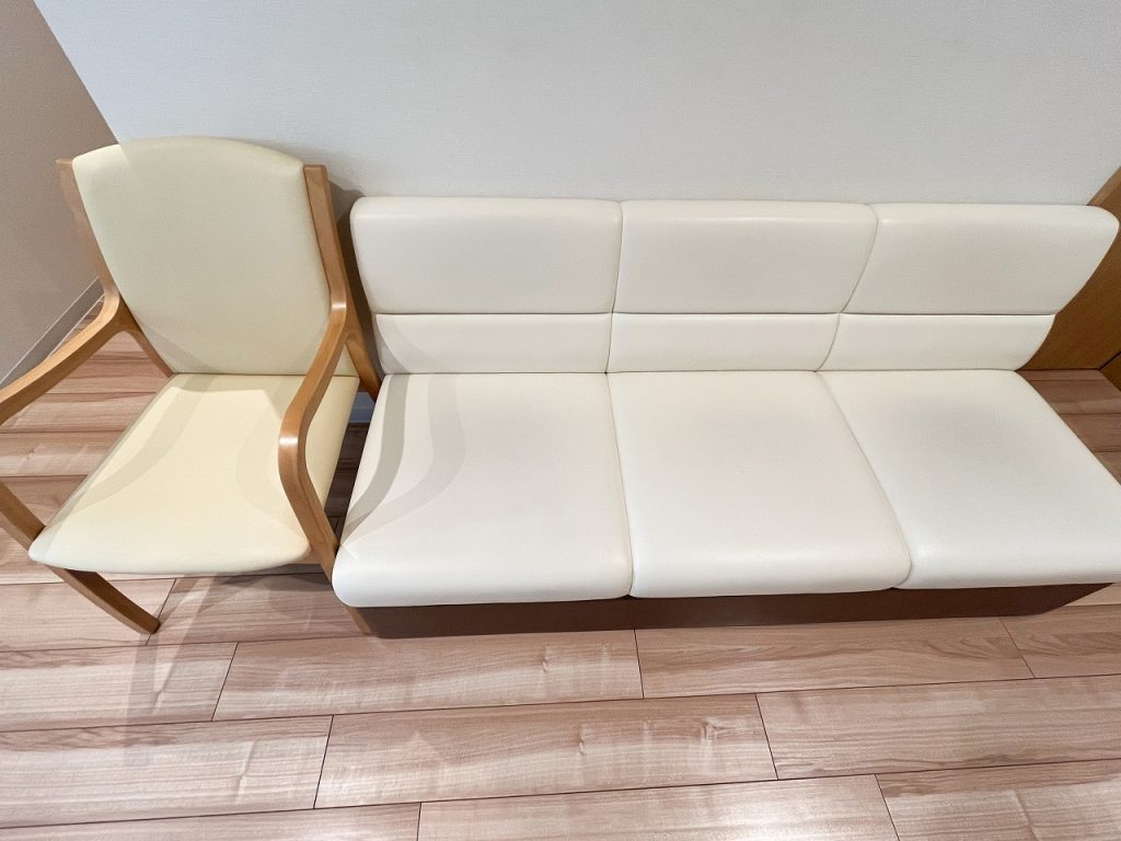 お客様より、待合室に設置されているソファと椅子の黒ずみが気になるとのご相談をいただき、クリーニングをご依頼いただきました。