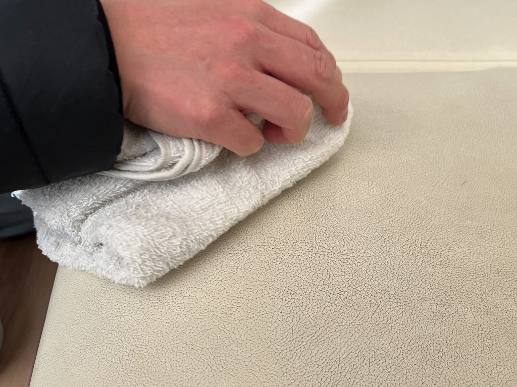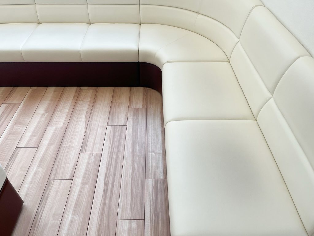 経年による黒ずみが目立っていた白いソファを美しく再生した事例