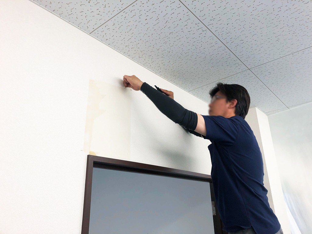 その上から新しいクロスを貼り替えたことで、元々ドアがあったとは思えないほど自然で美しい仕上がりになりました。