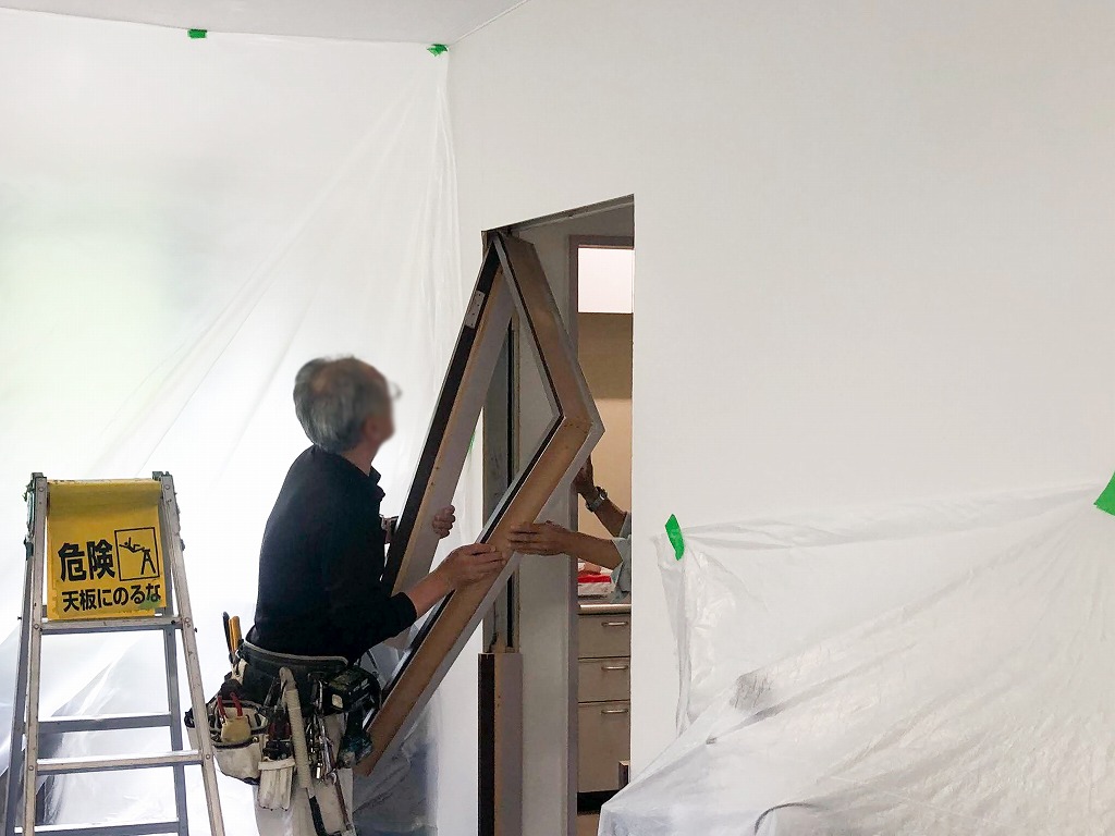 片側の木製ドアを撤去し、防音性能を備えたドアへの交換工事を行いました。